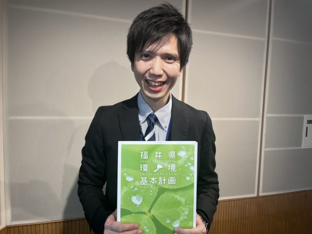 岩井さんがお持ちの冊子は「福井県環境基本計画」。