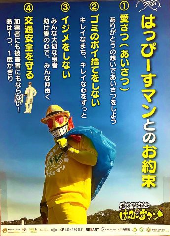 今日は、ご当地アイドルヒーロー「はっぴーすマン」と、